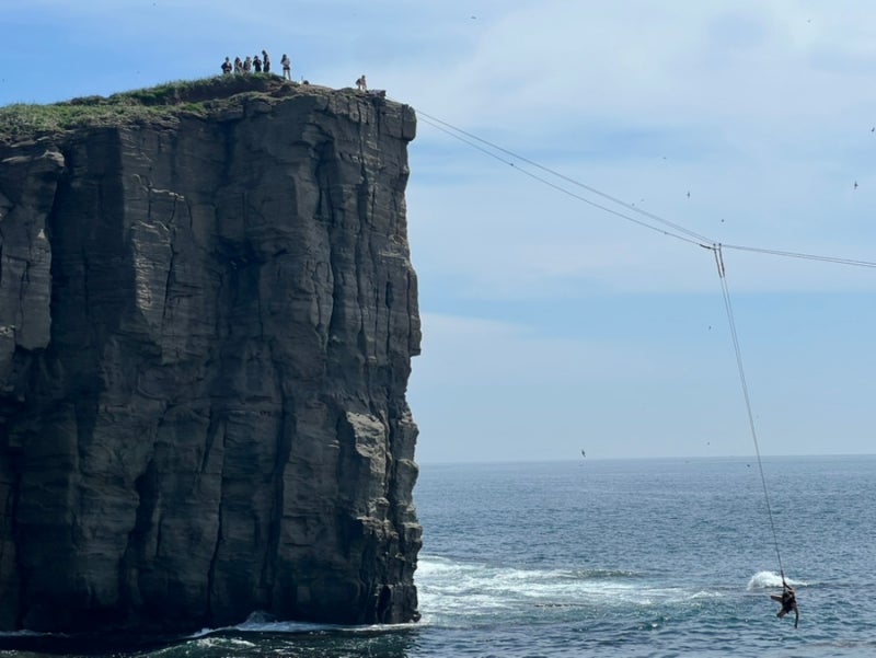 세계의 젊음은 모두 도전적이다. 역시 러시아의 젊은이들도 모험심이 강했다. 해안 절벽 위에 밧줄을 걸고 계곡 건너기 시도를 하며 구경꾼 모두들 환호를 보낸다. 이 섬이, 이 절벽이, 저 검푸른 파도가 모두 저들 젊음의 것이리라!
