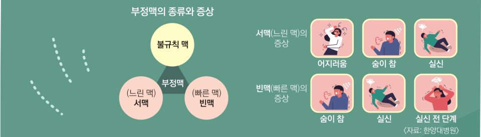 부정맥(Arrhythmia)은 말 그대로 ‘심장이 규칙적 박자로 뛰지 않는 상태’를 말한다. 심장에서 생성된 전기 신호나 전달 과정에 이상이 생기거나 비정상 신호가 발생하면 수축이 규칙적으로 이어지지 못해 심장 박동이 빨라지거나 느려지거나 불규칙해진다.