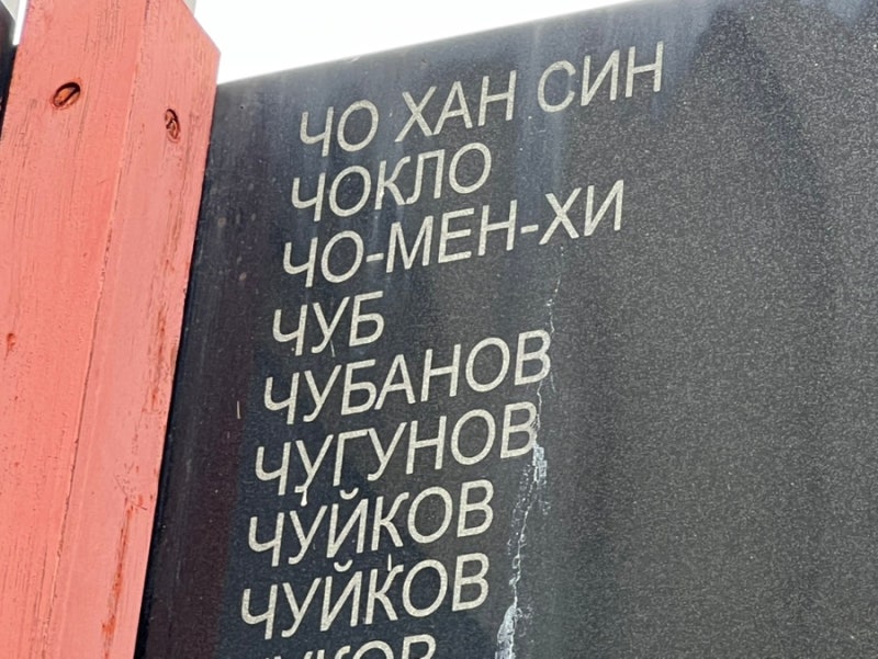 시립묘지 비극의 흔적, 조명희(위에서 세 번째 러시아어) 이름이 보인다.