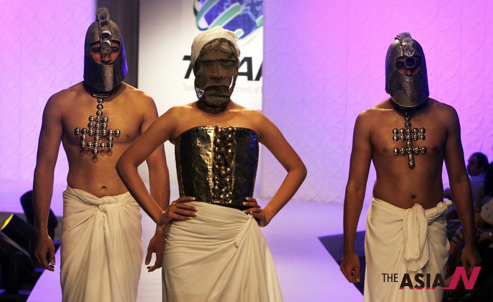 4일 파키스탄 카라치(Karachi)에서 열린 패션쇼에서 모델들이 파키스탄 디자이너가 디자인한 옷을 선보이고 있다. 이틀간 진행된 이번 패션쇼는 파키스탄 무역발전청에서 기획한 것이다. <AP Photo/Shakil Adil>