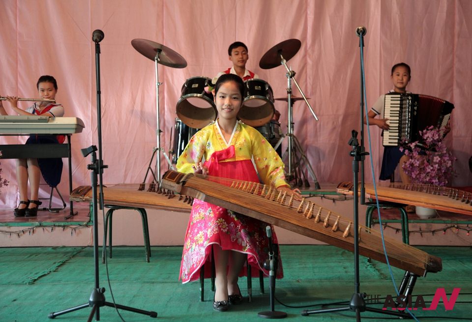 지난 5일 북한 평양에 있는 한 학교에서 학생들이 가야금과 아코디언, 드럼, 플루트 등의?악기를 연주하고 있다.