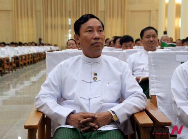 16일 미얀마 연방단결발전당 첫 회의에 참석한 우 쉐 만(U Shwe Mann) 부의장이 연사의 말을 경청하고 있다. <사진=신화사/U Aung>