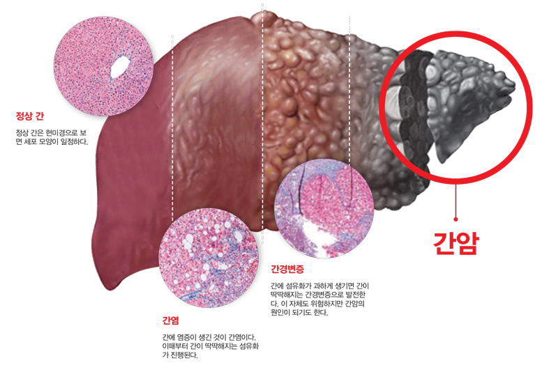 간(肝, liver)은 약 3,000억 개의 간세포와 여러 세포로 구성되어 있으며, 사람 몸속에서 500여 가지 역할을 담당한다. 알코올을 포함한 각종 음식물과 영양소를 저장하고 가공하는 역할을 하며, 체내 독소와 노폐물을 75% 이상 해독(解毒)해준다. 이 외에도 에너지 대사, 살균 작용, 면역 체계 유지 등 그 역할이 매우 다양해 ‘인체의 화학 공장(化學工場)’이라 불린다. 간암(liver…